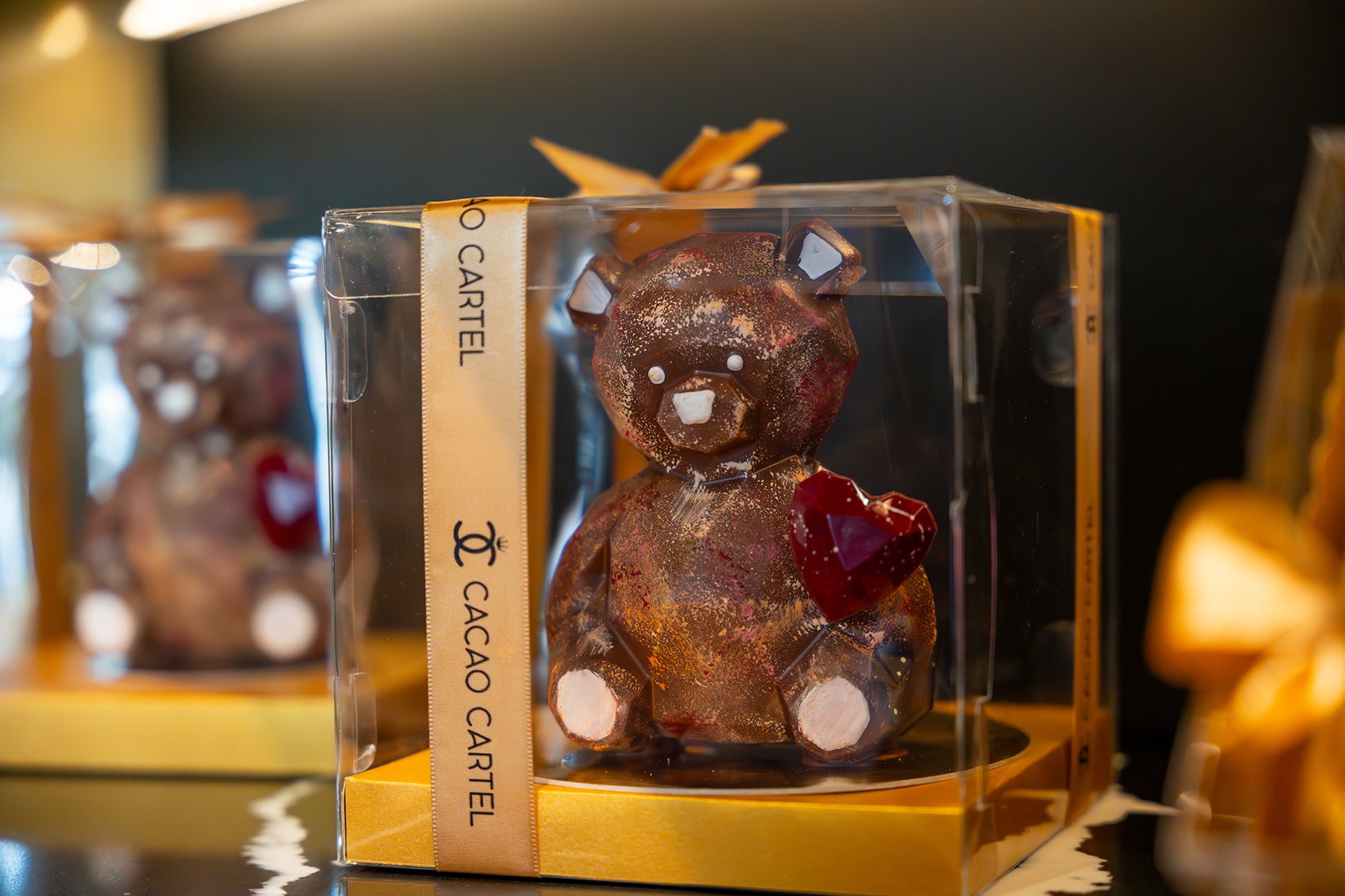 Regala dulzura a tu pareja o a tus seres queridos con el delicioso chocolate de CACAO CARTEL. El amor se expresa mejor con chocolate, y este osito es una obra de arte en sí mismo, ideal para San Valentín.